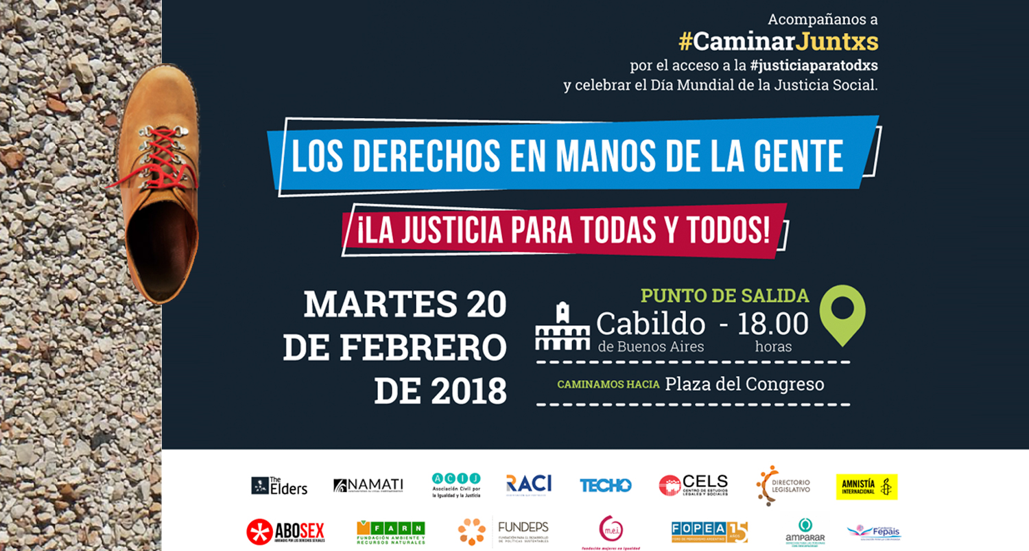 El 20 de febrero a las 18hs, ACIJ y organizaciones aliadas vamos a caminar desde el Cabildo a la Plaza del Congreso para pedir un mayor compromiso de los gobiernos del mundo con el acceso a la justicia. Al finalizar el recorrido, entregaremos un petitorio a representantes de la Justice Task Force (compuesta, entre otros actores, por los gobiernos de la Argentina, Canadá, Holanda, Sierra Leona y Sri Lanka).